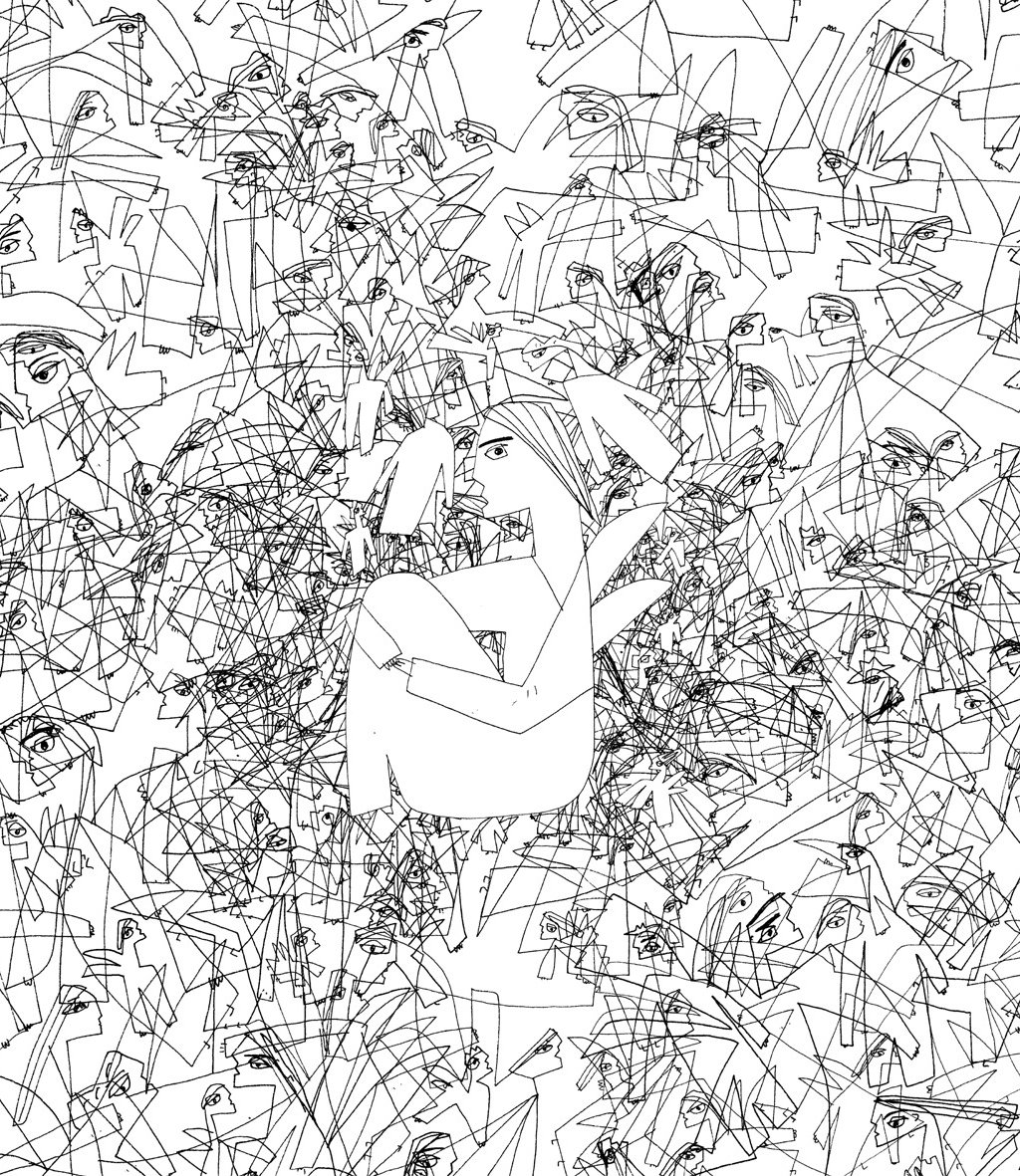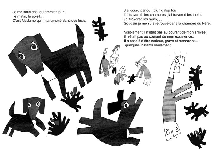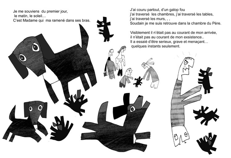 À ces larges illustrations, s’ajoutent des vignettes qui servent de virgules, un Gombrowicz qui n’est ni caricaturé ni copié-photographié, et des dessins, des dessins, des dessins… Des animaux rescapés du déluge de l’imagination de Wozniak (beaucoup de vaches, quelques corbeaux), des poissons, des créatures mi-homme mi-bête, des corps désarticulés, des bonshommes de neige, des personnages historiques identifiables, des femmes à la silhouette déliée, des prêtres, des sbires à l’uniforme stalinien, la grande faucheuse…. Très peu de choses ou d’objets, pas de matière inerte.